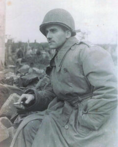 In several engagements on the battlefields of Europe following the invasion, he earned three Bronze Stars, the French “Croix de Guerre with Silver Gilt Star” and two Purple Hearts. Authorized after the war, the “V” Device for valor was added to his combat awards, which also included the Army Commendation Medal, the Combat Infantry Badge and numerous campaign and service medals.